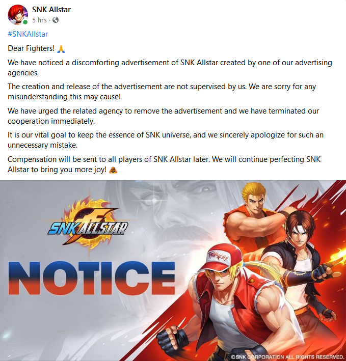 Commercial for SNK All-Star, removed by SNK due to mistreatment of female characters