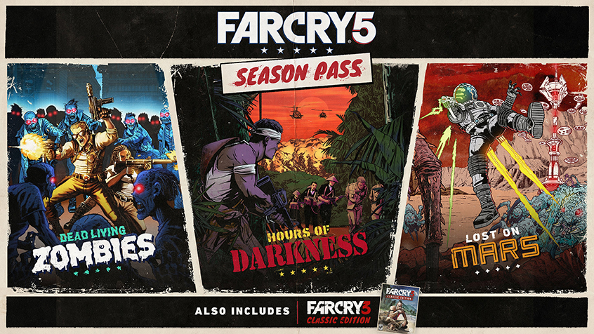 Ubisoft Reveals Far Cry 5 Season Pass Details Today, Ubisoft announced the content of the Far Cry 5 Season Pass, available as part of the Far Cry 5 Gold Edition or as an add-on purchase on PlayStation 4 computer entertainment system, Xbox One and PC. Following the launch of Far Cry 5 on March 27th, the season pass will take players on three uncanny adventures with a unique Far Cry twist.