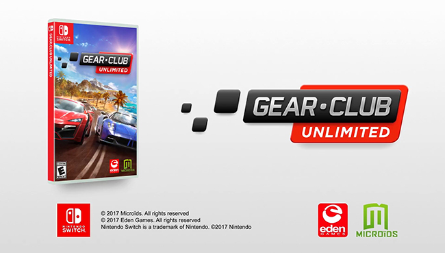 Gear.Club Unlimited in Pole Position For Nintendo Switch on December 1st 2017 Microids and Eden Games are proud to announce the release of Gear.Club Unlimited on December 1st 2017 for Nintendo Switch and reveal the first trailer for the game. For the first time on Nintendo Switch, players will discover an authentic racing car universe with Gear.Club Unlimited. They will approach the most incredible rides currently on the market, vibrate to the sound of high power engines to live a driving experience second to none in the most beautiful cars in the world. With this trailer, which reveals the first images of gameplay, players will discover that these vehicles can be customized according to their taste and be improved to make them more powerful. Players will also be delighted to discover the first 16 super cars that will make up part of the game’s roster. • AC 378 GT Z • Alfa Romeo 4C • Alfa Romeo 8C Competizione • Bugatti Veyron GrandSport • Chevrolet Camaro 1LS • Chevrolet Corvette Stingray • Dodge Challenger RT/Scat Pack • Jaguar F-Type R AWD • Mercedes-AMG C63 S • Mercedes-AMG GT S • Mercedes-AMG SLS Black Series • Nissan 370Z • Nissan GTR • Pagani Huayra Roadster • Ruf RT12 R • Ruf CTR 3 Gear.Club Unlimited offers players the opportunity to test their racing skills on over 400 races in 3 modes: