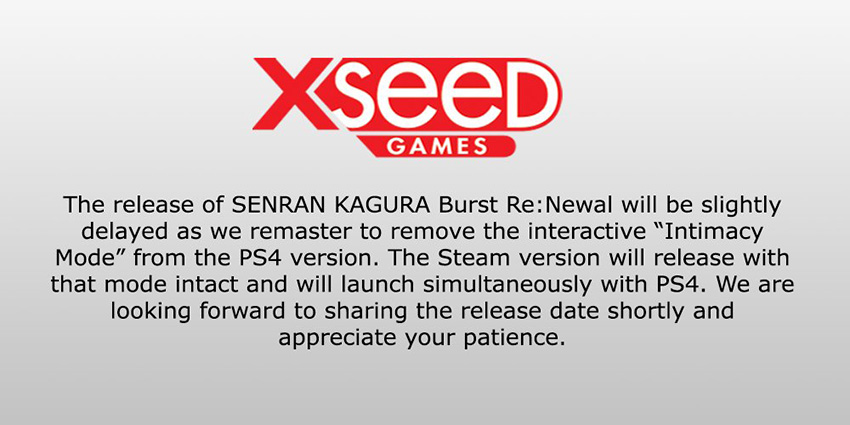 Senran Kagura Burst Re:Newal delayed to remove “Intimacy Mode” from PS4 version