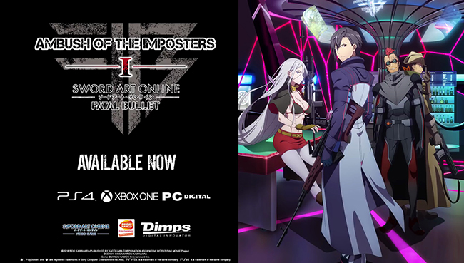 Ambush of the Imposters DLC for Sword Art Online: Fatal Bullet Released Bandai Namco Entertainment today release the first DLC Ambush Of The Imposters for Sword Art Online: Fatal Bullet on PlayStation 4, Xbox One and PC. The DLC features a brand-new story arc with a new dungeon and boss battle. Ambush Of The Imposters also includes: