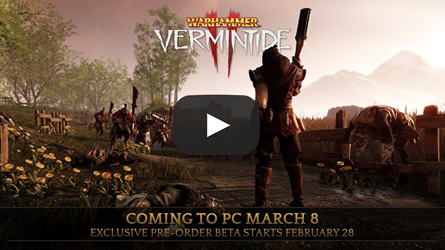 | Warhammer: Vermintide 2 Available on Steam March 8 Independent developer Fatshark today announced that Warhammer: Vermintide 2, the highly anticipated sequel to the multi-million selling game Warhammer: End Times – Vermintide, will be available on PC on March 8th, 2018.